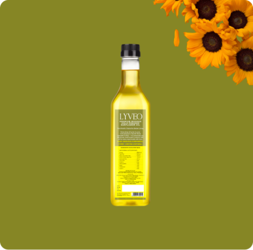 Experience the light, neutral goodness of pure sunflower seeds, gently cold pressed to preserve their natural nutrients, flavour, and quality. LYVEO Sunflower Oil is more than just a cooking oil—it’s your everyday choice for clean, balanced nourishment.